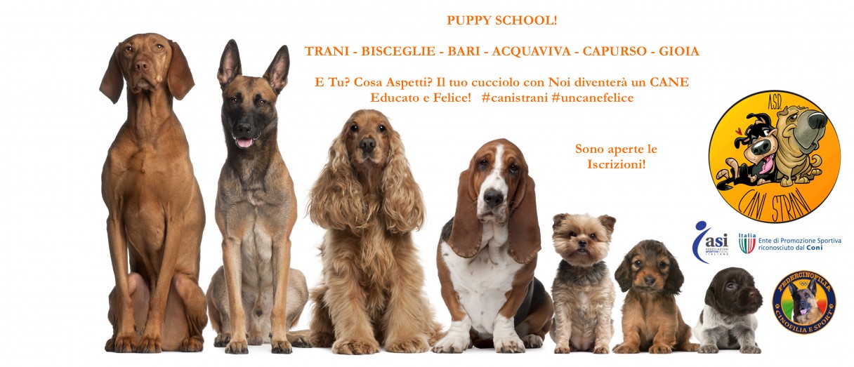Contattaci per conoscere le puppy class per cuccioli da 3 a 5 mesi organizzate nella provincia di Bari da Cani Strani A.S.D.